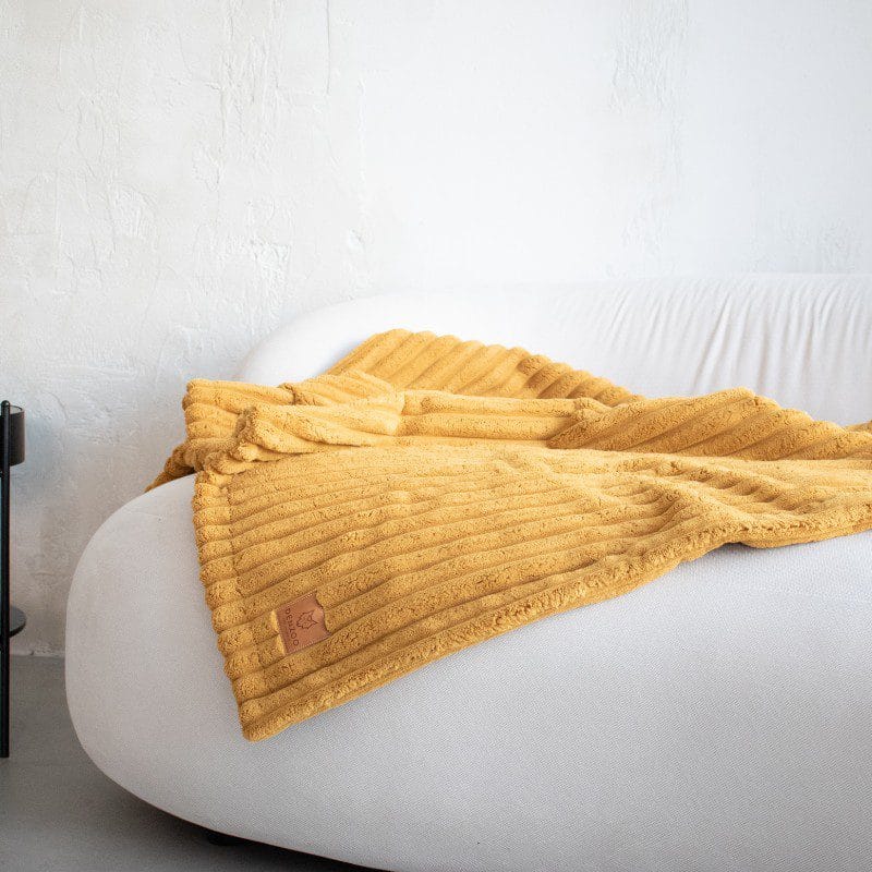żółtym, beżowym, ciemnoszarym i granatowym – idealnych do nowoczesnych, klasycznych i skandynawskich wnętrz. Dzięki subtelnej kolorystyce, kocyk będzie nie tylko praktycznym dodatkiem, ale i ozdobą Twojego domu.