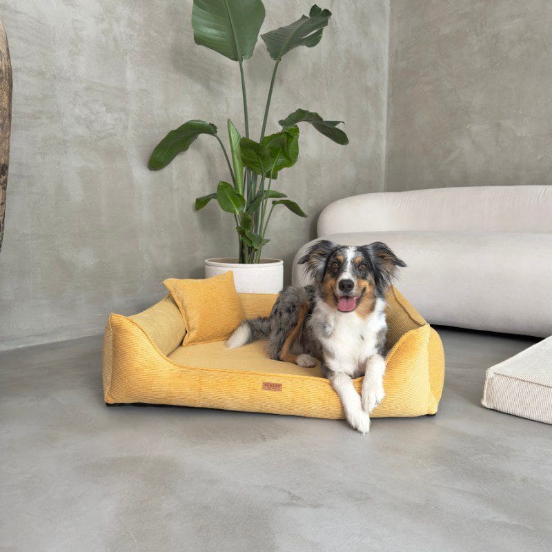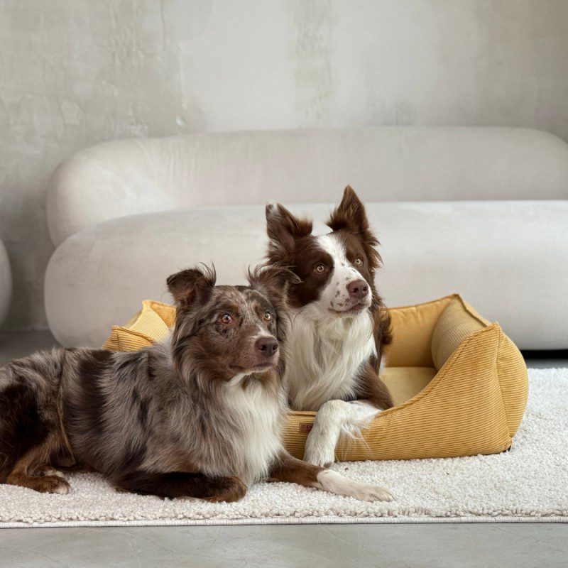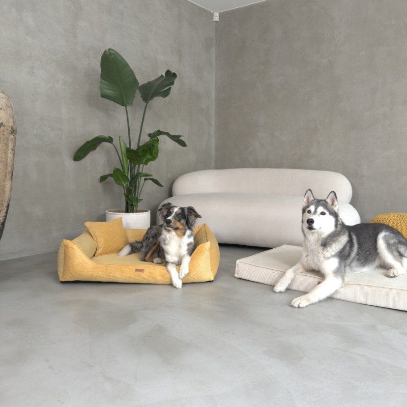 Modne kolory: musztardowy, beżowy, ciemnobeżowy, zielony, szary – dopasujesz legowisko do wystroju mieszkania.